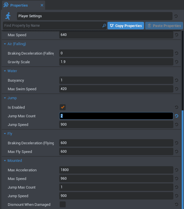 - Ouvrez la fenêtre Properties pour afficher tous les paramètres pouvant être modifiés pour chaque joueur.