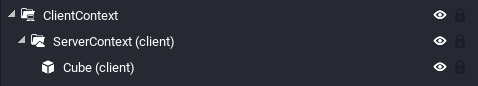 All children of a client context only exist on a player's local version of the game. The server does not load or synchronize any of them. This brings a number of limitations, but also a few advantages.