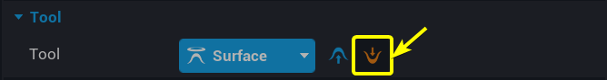 destructive sculpting icon will enable Destructive Sculpting. Destructive sculpting removes terrain under the brush. The Destructive Sculpting setting exists on both the Surface and Shape tools.