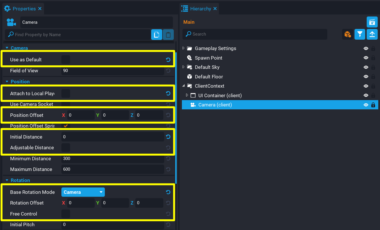 Create a new Camera inside the Client Context folder.