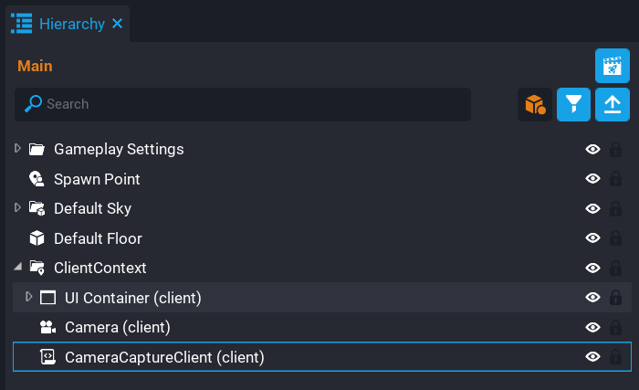 Create a new script called CameraCaptureClient and place it inside the Client Context folder in the Hierarchy.