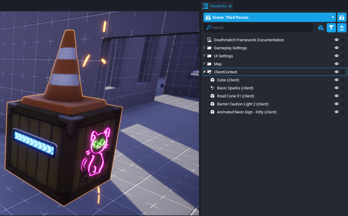 Right click the Hierarchy and expand the Create Network Context... to select the New Client Context option. Place some objects as children to the Client Context.