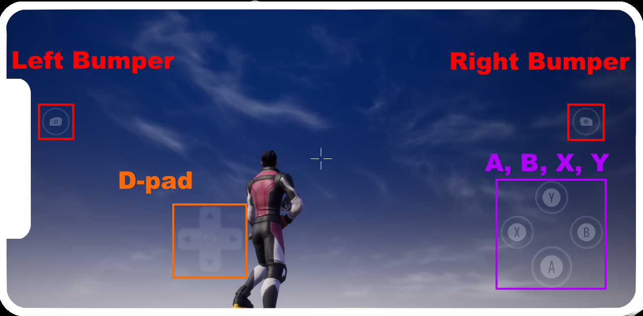 Based on the action bindings (will be covered later on), there may be other buttons on the screen. There may be bumpers on the sides, a D-pad on the left side, and up to four buttons on the right side (X, Y, A, B).