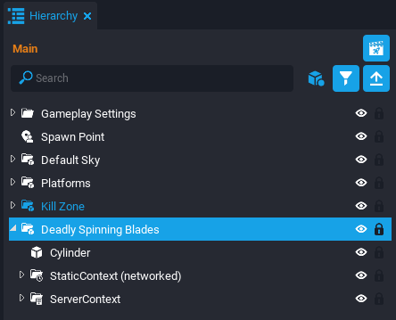 Create a new script and name it RotatingPlatform_Server. From the Project Content window, drag the RotatingPlatform_Server script into the Hierarchy.
