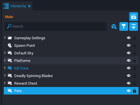 Right click the Hierarchy and select New Group. Name the group Pets. This group will be the parent to the pets that are spawned, as well as the script that is spawning them.