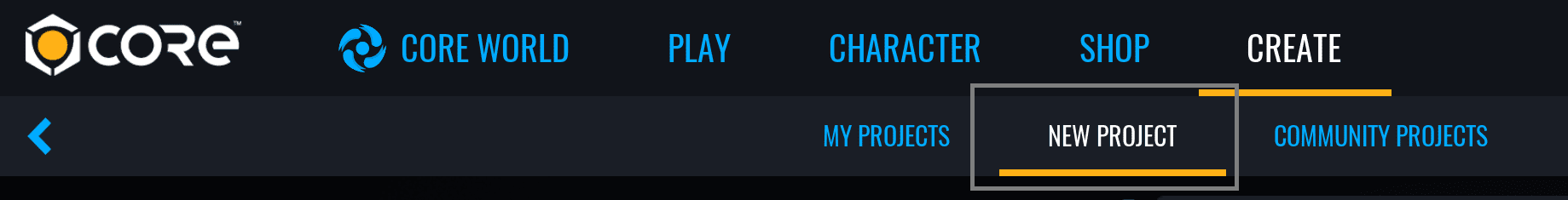 - Click the NEW PROJECT tab at the top of the CREATE menu.