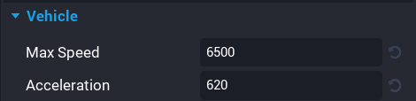 You need to scroll down in the Properties window until you a section named Vehicle. In the Vehicle section you will see two properties Max Speed and Acceleration. The Max Speed property controls the maximum speed of the Pickup Truck. The Acceleration property of the Pickup Truck controls the acceleration of the Pickup Truck.