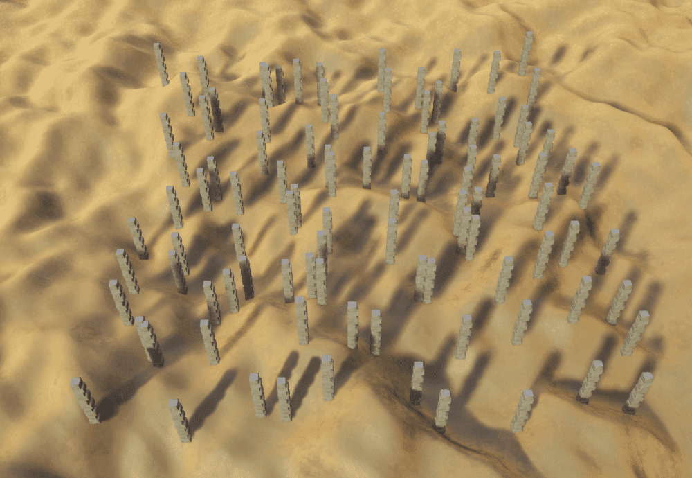 Using a cylinder that is placed between 2 objects, it can be used as a projector that will project the selected asset to the object above or below, depending on the Direction to Spawn setting.